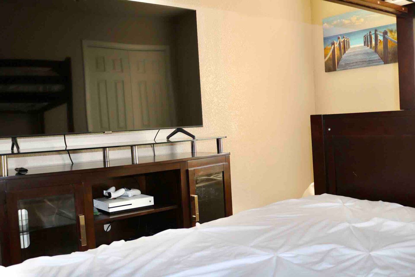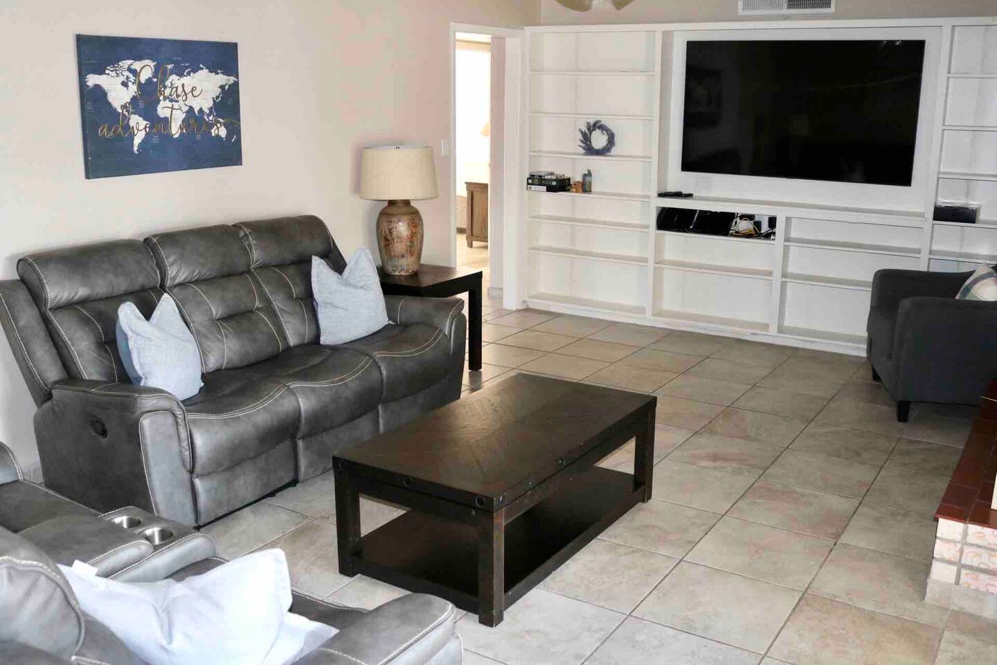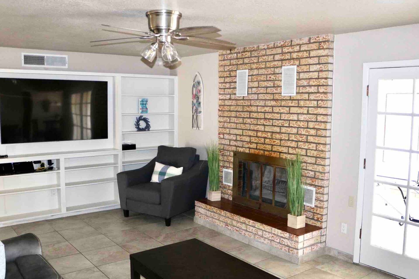 The home has a spacious living room with a natural wood burning fireplace & a flat screen tv with streaming services. The kitchen has a morning breakfast area & includes modern appliances, fully equipped for all your cooking needs or step outside and fire up the grill for some outdoor cooking experiences. Directly adjacent to the kitchen is a large formal dining room with a table to sit eight guests. In the bedrooms you will have fresh linens & comfy queen beds. The master bedroom has a walk in shower. The large fenced in backyard has a new swimming pool and spa with changing color lights that will set the tone. Plus a new sand volleyball court with a light post to continue the fun even when the sun goes down. Inside the spacious sunroom you could enjoy some ping pong matches & stir up some more fun. You will have access to the 2 car garage to park your vehicles during your stay. It comes with wireless internet, free for our guests. This home is loaded with fun & amenities. You will receive access to the entire home. When you book, the entire home will be reserved for your stay & all other listings calendars will be blocked. This is not a shared space.