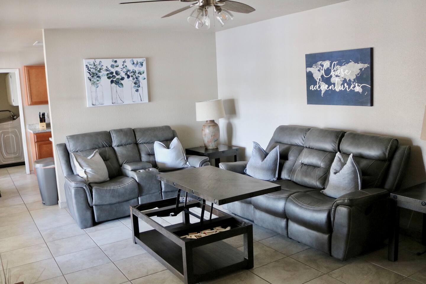 The house rules of the property include the following: Smoking is NOT allowed in properties. If the cleaning crew detects any evidence of smoking, a fee of $400 will be retained for deodorizing the home. NO unapproved guests not accounted for in the rental/booking agreement may stay overnight in the property. If unauthorized guests have been found to stay in the property, a fee of $250 will be retained from the guest, plus $25 per person. The property & all furnishings are to be kept clean and in order. Guests are responsible for maintaining the premises throughout the duration of the stay. NO unapproved events are to be held at the property. Parties are prohibited & a minimum fee of $500 will be retained from guests if we find that a party took place on the property. Parking is allowed in respective areas, with the garage included at no additional cost. A remote for garage doors will be provided throughout the duration of stay but will need to be returned before checking out. A replacement fee of $150 will be retained from the guests & will be charged if not returned. All items provided in the home are to be returned to their place & not be taken or damaged. This includes bath towels & linen. A fee will be assessed for any items taken or damaged from the property. Do NOT flush any items other than toilet paper down the toilets. This includes feminine products & wipes to not be flushed & only disposed of in the trash. If it is found that this was not followed & causes plumbing problems, Guest will be charged for the cost of the plumbing repair. No fires are allowed on the property. The homeowner & booking agent is NOT responsible for any accidents, injuries or illness that occurs on the premises. The guests are responsible for their own personal belongings or valuables brought into the property. By accepting the reservation, it is agreed that all guests are expressly assuming the risk of any harm arising from their use of the premises or others whom they invite to use the premise. Guests are to conduct themselves in a respectful manner within the premises & surrounding neighbors of the property. Quiet hours are from 10PM to 6AM & to be respected throughout the duration of stay. No Pets not previously approved are allowed on the property - Approved pets are welcome! If pets are found to have been in the home without previous approval, a fine of $350 will be assessed. Approved pets are to be kept out of carpeted areas & cleaned up after, leaving no droplets in or around the yard. All trash accumulated throughout the duration of stay is to be disposed of by guests in designated trash containers of the home. No trash or other items may be left on the property or outside the front door. There will be a trash dumping fee of $50 if this rule is not followed. Guests are responsible for securing the property upon each departure of the home up until the moment of checking out. All blinds & shades must be closed & all doors & windows are to be secured with their lock. Contact your host immediately if any difficulty arises when properly securing the property.
